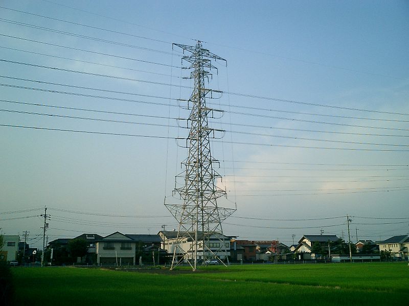 わかりますか、この鉄塔の素晴らしさが! 右下から伸ばされた電線が、この鉄塔で上へ吊るし上げられ、左上に経由されているんです。なんて高度な技なんでしょう。デルタ翼を展開し発進するロケットのようにも見えます。