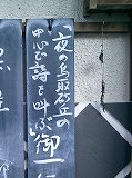 しばらく休んでから、多少の手荷物だけ持って三階の宴会場に向かった。細い廊下を逆にたどり、隅の階段を上る。その踊り場の壁に、またも木の板があり川柳が書かれていた。そこらじゅうにあるらしい。いったい幾つあるんだろう。